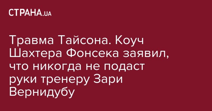 После вчерашнего матча Шахтер - Заря, в котором тяжелую травму получил капитан "горняков" Тайсон, главный тренер дончан не скрывал эмоций на пресс-конференции. Паулу Фонсека заявил, что никогда не протянет руку тренеру Зари Юрию Вернидубу.