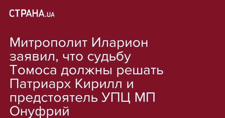"Патриарх Константинопольский должен был договариваться с нашим Святейшим патриархом Московским и всея Руси Кириллом и Блаженнейшим митрополитом Киевским и всея Украины Онуфрием. Он (Варфоломей - Прим.Ред.)как первый среди равных тогда мог бы подтвердить установление автокефалии. Но автокефалия должна даваться патриархом Русской православной церкви", - отметил митрополит Иларион.