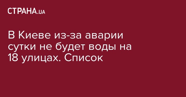В Киеве из-за аварии сутки не будет воды на 18 улицах. Список