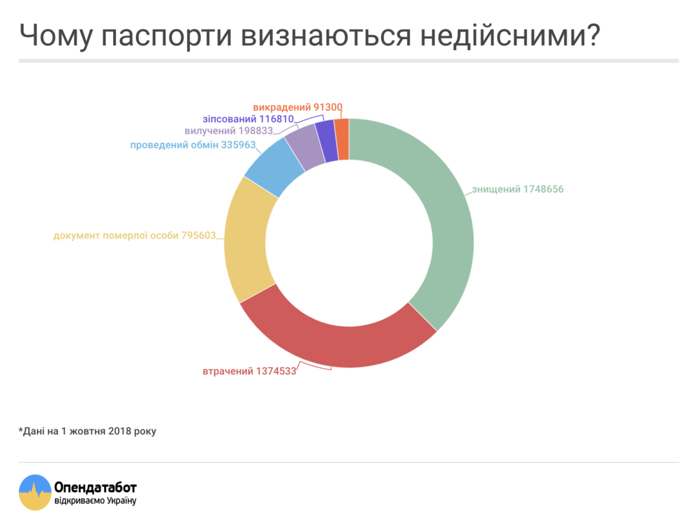 По данным платформы, большая часть из этих паспортов утеряны (1,3 млн), еще около 90 тысяч украдены, а 25,7 тысячи - документы умерших людей, которые не сдали в Государственную миграционную службу.