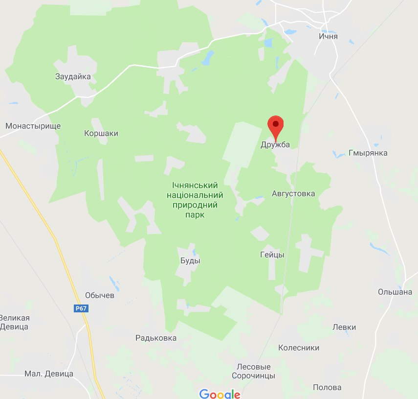 Т-25−27 Новый Быков - Ичня от перекрестка с дорогой Р-67 Чернигов-Нежин-Прилуки-Пирятин в сторону сел Хаенки, Монастырище и Ични;