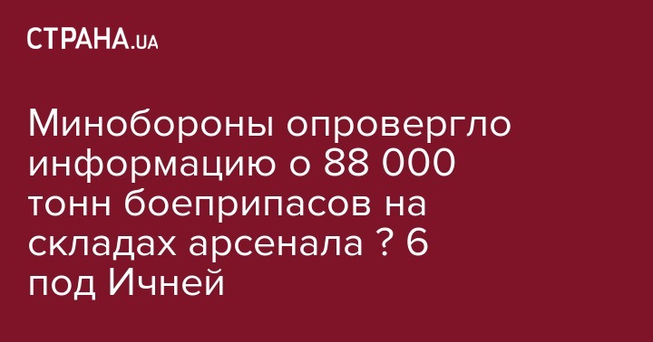 Министерство обороны Украины опровергло информацию о том, что на складах 6-го арсенала под Ичней находилось около 88 000 тонн боеприпасов. Соответствующее сообщение было размещено на странице ведомства в Facebook.
