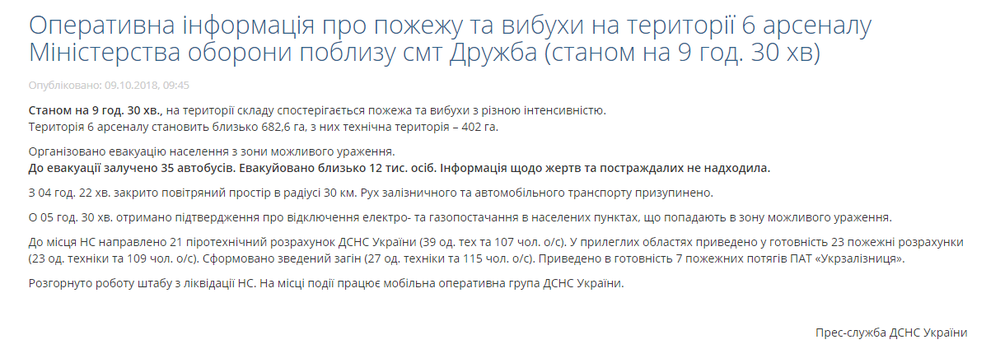 В свою очередь, на сайте Управления ГСЧС в Черниговской области по состоянию на 11:15 есть сообщение о том, что на складах 6-го арсенала под Ичней находится около 88 000 тонн боеприпасов.