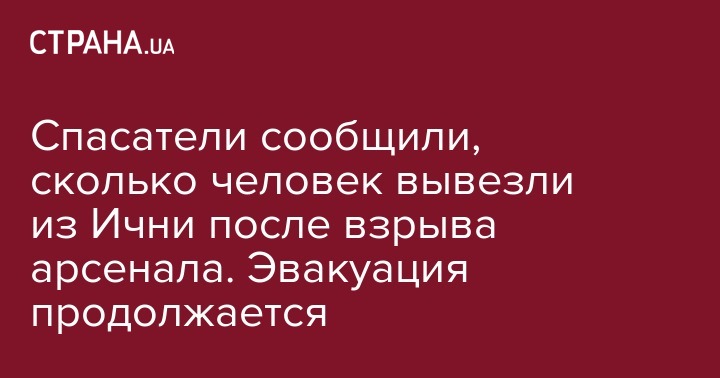 По состоянию на 18:00 9 октября из зоны возможного поражения от взрывов арсенала вблизи Ични уже эвакуировали более 12,5 тысяч человек. Об этом сообщает пресс-служба ГСЧС.