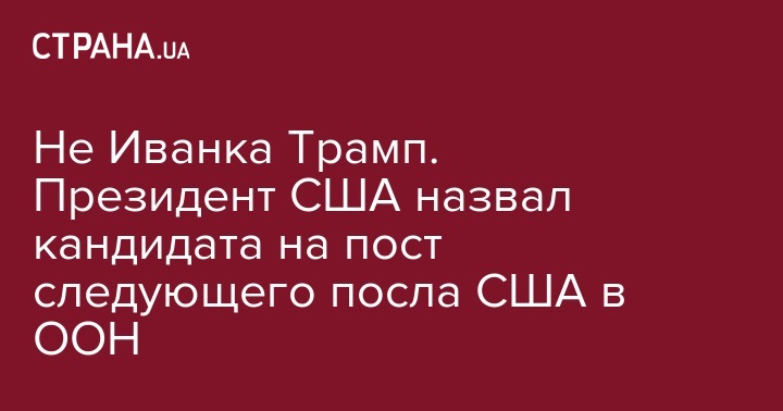 Как сообщала "Страна", ранее были названы сроки, когда Трамп назовет имя нового постпреда США в ООН. Предположительно речь шла о двух неделях.