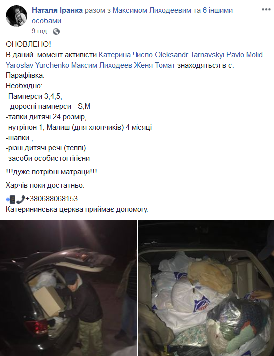 Волонтеры и активисты собирают для них помощь - нужны памперсы, теплые детские вещи, средства личной гигиены, матрасы и одеяла. Так, несколько десятков взрослых и детей провели эту ночь в спортивном зале Парафиевского детсада № 1 "Малятко" и в Южненской общеобразовательной школе Парафиевского поселкового совета.