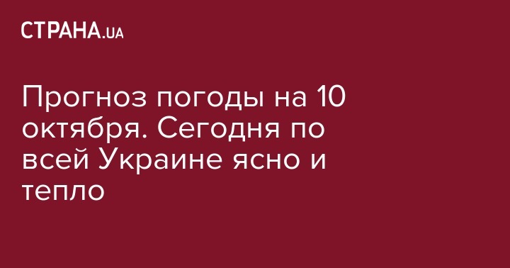 Сегодня, 10 октября, в Украине будет сухо, солнечно и тепло. Об этом речь идет в прогнозе погоды от Укргидрометцентра.