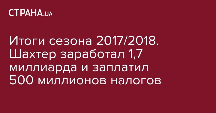 Итоги сезона 2017/2018. Шахтер заработал 1,7 миллиарда и заплатил 500 миллионов налогов