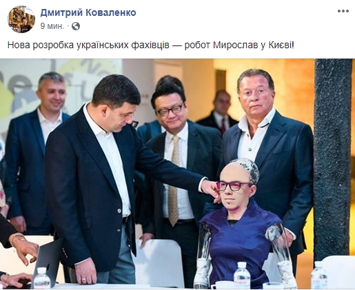 В сети уже начали реагировать на эту встречу. Так, блогер Дмитрий Коваленко опубликовал "фотожабу", на которой на Софию прифотошоплено лицо пропорошенковского блогера Мирослава Олешко с подписью:"Новая разработка украинских специалистов - робот Мирослав в Киеве!"