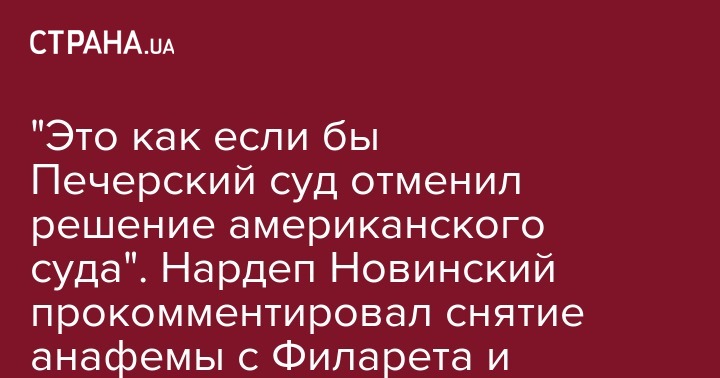 "Анафему может снять только та церковь, которая ее наложила. Это закон законов. И отменять этот закон не может ни Варфоломей, никакие другие патриархи. Изменить эти законы может только Вселенский собор... Если вам дать пример, это если бы Печерский суд отменил закон некого американского суда. Вот это имеет такую силу. Филарет взял страшный грех, грех раскола. И это смывается только покаянием.