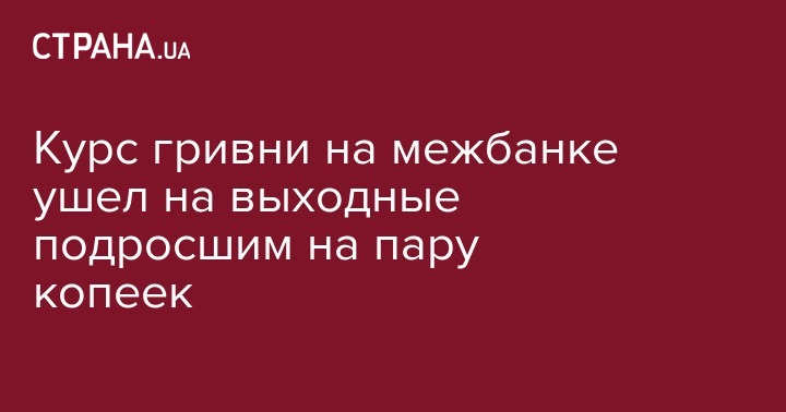 Курс гривни на межбанковском валютном рынке в пятницу укрепился до 27,955 грн/$1 с 27,97 грн/$1 днем ранее, сообщили агентству "Интерфакс-Украина" дилеры коммерческих банков.