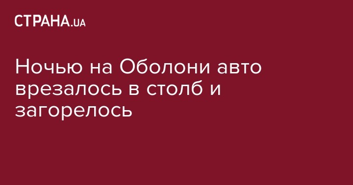 Авария произошла на Оболони. Известно, что Chevrolet Aveo вылетел на разделительную клумбу, снес столб и загорелся.