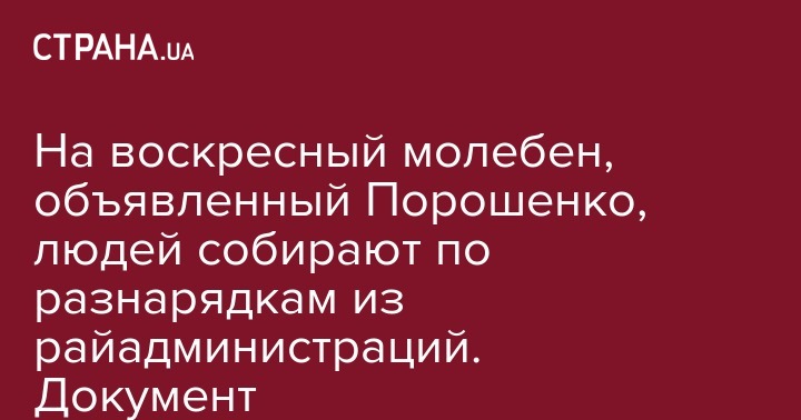 На воскресный молебен, объявленный Порошенко, людей собирают по разнарядкам из райадминистраций. Документ