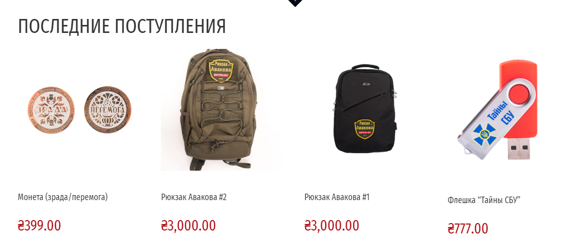 В сети создали портал, на котором можно приобрести сувенирные товары, такие как рюкзак Авакова или флешку с секретами СБУ.