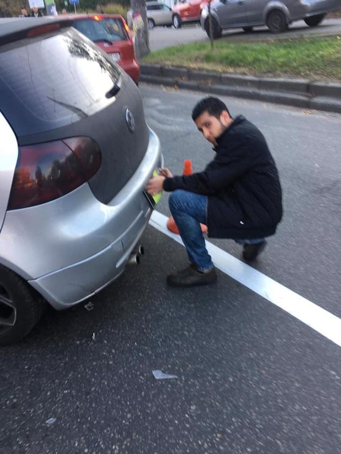 По словам бывшего добровольца АТО, предпринимателя Александра Матяш, после ДТП к работнику посольства приехали его знакомые и начали себя вести по-хамски. "После ДТП к нему приехала группа поддержки, которая пыталась закрыть номера машины. Они вели себя вызывающе, хамили моему пассажиру с попытками напасть. Но мы люди воспитанные и когда ко мне приехали собратья из разных подразделений, они успокоились. И стали почти котиками. Как всегда это бывает", - отметил бывший военный.