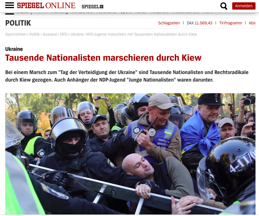 Германский Spiegel также дает новость участии в марше УПА экстремистов Германии и тоже вспоминает о Волынской трагедии.