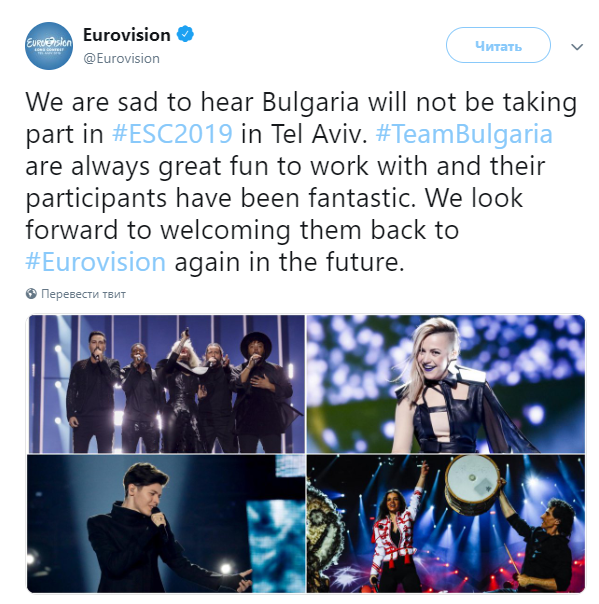 Организаторы конкурса отметили в Twitter, что им "грустно слышать" о решении Болгарии.