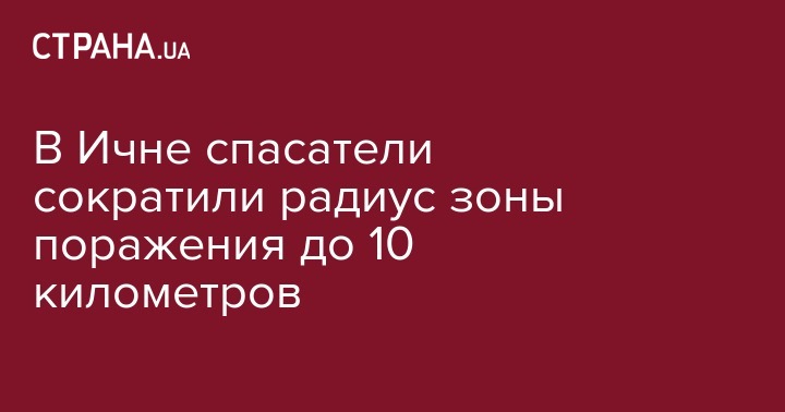 В районе Ични Черниговской области радиус опасной зоны, прилегающей к арсеналу, сократился до 10 километров. Об этом сообщает пресс-служба ГосЧС Украины.