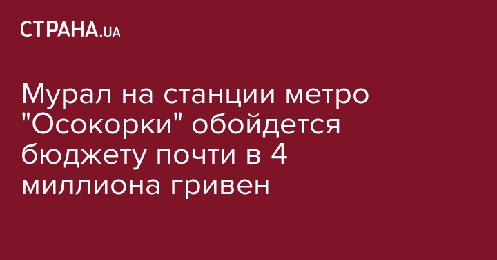 В Киеве на станции метро "Осокорки" появится дорогостоящий мурал, который обойдется городскому бюджету в 3,65 миллиона гривен. Такие данные указывает госпредприятие "Центр защиты информационного пространства Украины", выступающее заказчиком работ.