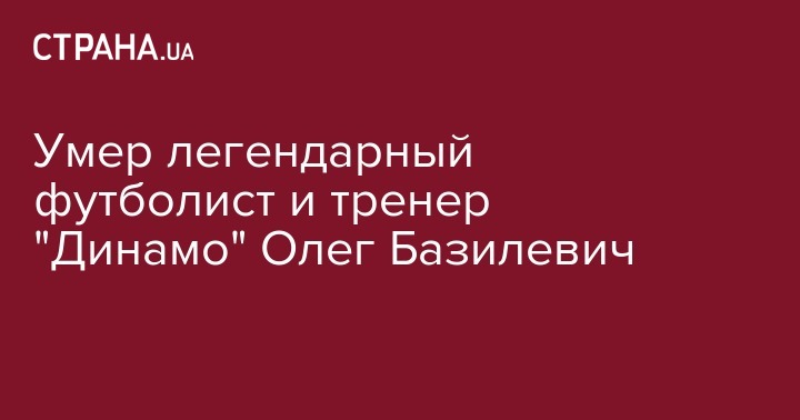 Легендарный футболист и тренер киевского "Динамо" Олег Базилевич ушел из жизни в 80 лет в Киеве. Об этом сообщает УНИАН. Базилевич долгие годы боролся с тяжелым недугом - болезнью Паркинсона.