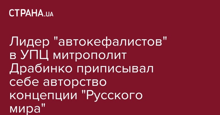 Лидер "автокефалистов" в УПЦ митрополит Драбинко приписывал себе авторство концепции "Русского мира"