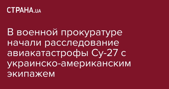В военной прокуратуре Центрального региона Украины начали расследование авиакатастрофы истребителя Су-27УБ в Винницкой области. Со ссылкой на Генштаб, в прокуратуре также сообщили, что пилотами самолета были украинец и американец из ВВС Национальной гвардии США. Самолет выполнял учебно-боевой полет в рамках военных учений "Чистое небо-2018" ("Clear Sky-2018").