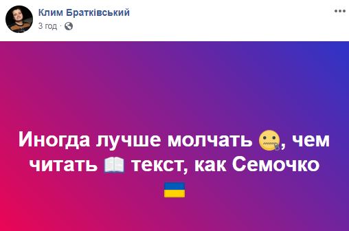 "Иногда лучше молчать, чем читать текст как Семочко", - уверен Братковский.