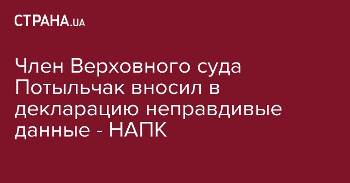 Член Верховного суда Потыльчак вносил в декларацию неправдивые данные - НАПК