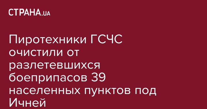 Во вторник, 16 октября, пиротехники очистили от боеприпасов все 39 населенных пунктов, расположенных вокруг арсенала в Ичнянском районе Черниговской области. Об этом сообщает  пресс-центр ГСЧС.