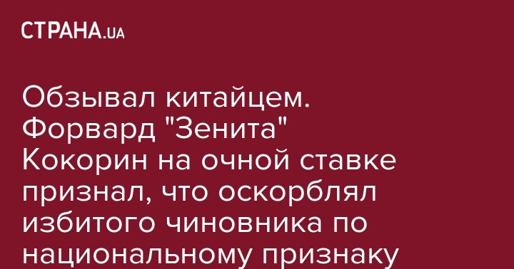 Обзывал китайцем. Форвард "Зенита" Кокорин на очной ставке признал, что оскорблял избитого чиновника по национальному признаку