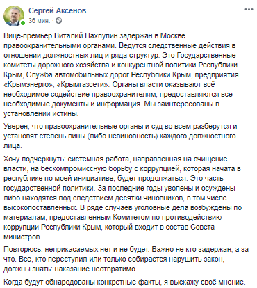В Москве задержан "вице-премьер" Крыма Виталий Нахлупин. Об этом на своей странице  в соцсети сообщил "премьер-министр" Сергей Аксенов. По его словам, ведутся следственные действия в отношении должностных лиц и ряда структур.