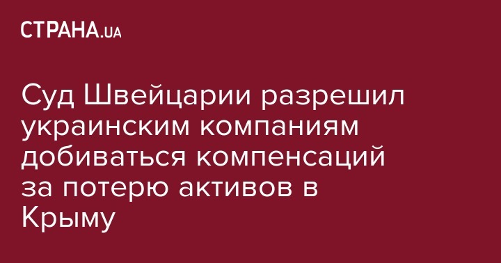 Федеральный суд Швейцарии 16 октября постановил, что состав международного арбитража в Женеве имеет право разобрать по существу заявления 12 украинских компаний о возмещении убытков за национализацию их активов в Крыму после марта 2014 года. Швейцарский суд рассматривал этот вопрос по ходатайству российского правительства, которое возражало против компетенции женевского арбитража в этих спорах. Об этом пишет РБК.