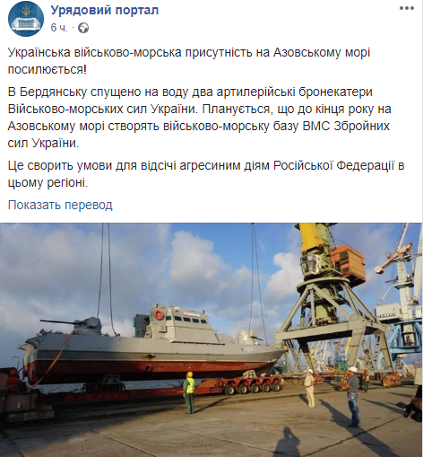 Из сообщения правительства стало ясно, что бронекатеров на строящейся базе пока немного - только два - но лиха беда начало.  Также на Азов начали перебрасывать отряды спецназа.