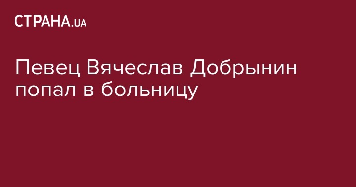 Эстрадный певец Вячеслав Добрынин госпитализирован. Версию об инсульте, как причине госпитализации, опроверг директор певца, сославшись на жену Добрынина. По ее словам, "он немного приболел".
