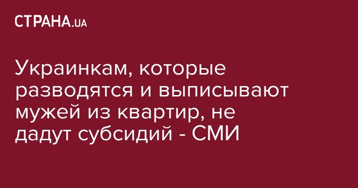 Украинкам, которые разводятся и выписывают мужей из квартир, не дадут субсидий - СМИ
