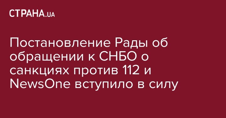 Постановление Рады об обращении к СНБО о санкциях против 112 и NewsOne вступило в силу