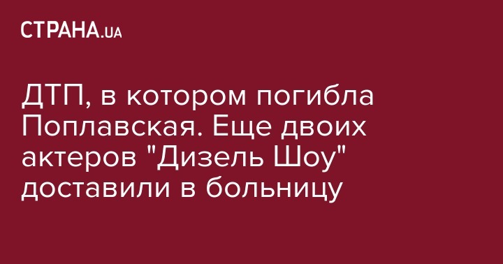 В аварии, в которой погибла украинская актриса Марина Поплавская, госпитализированы еще два актера. Об этом в Facebook сообщает пресс-служба "Дизель Шоу".