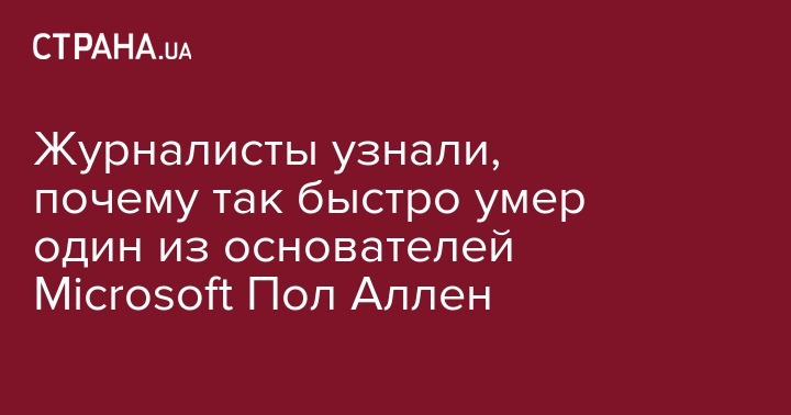 Американский предприниматель и филантроп, один из основателей Microsoft Пол Аллен умер от септического шока. В заключении о смерти, которое есть в распоряжении TMZ, говорится, что причиной смерти стали септический шок и подавление иммунитета как результат одной из форм лимфомы.