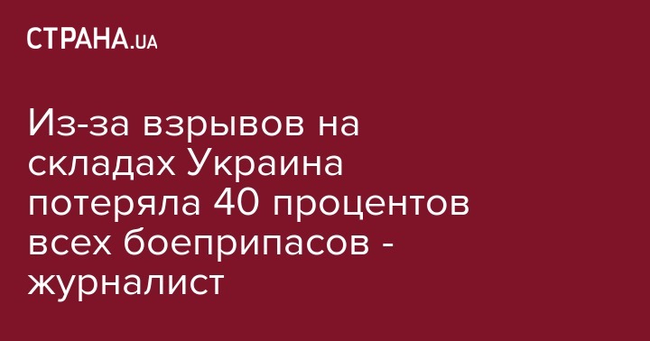 Из-за взрывов на складах Украина потеряла 40 процентов всех боеприпасов - журналист