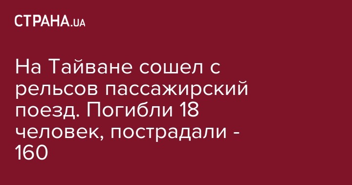 На севере острова Тайвань в воскресение, 21 октября, сошел с рельс скоростной поезд Puyuma Express. Число погибших в результате железнодорожной аварии уже достигло 18 человек. Также стало известно, что число пострадавших превысило 160 человек, сообщает United Daily News.