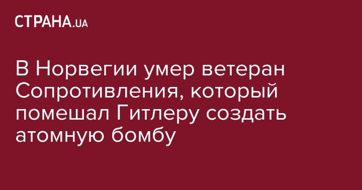 В Норвегии умер ветеран Сопротивления, который помешал Гитлеру создать атомную бомбу