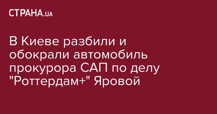 Неизвестные разбили в Киеве автомобиль начальника отдела управления Специализированной антикоррупционной прокуратуры (САП) Ольги Яровой, которая расследует дело о фактах возможного злоупотребления служебным положением членами Национальной комиссии госрегулирования энергетики и коммунальных услуг (НКРЭКУ) при утверждении оптовой цены электрической энергии по формуле "Роттердам+", и обокрали его.