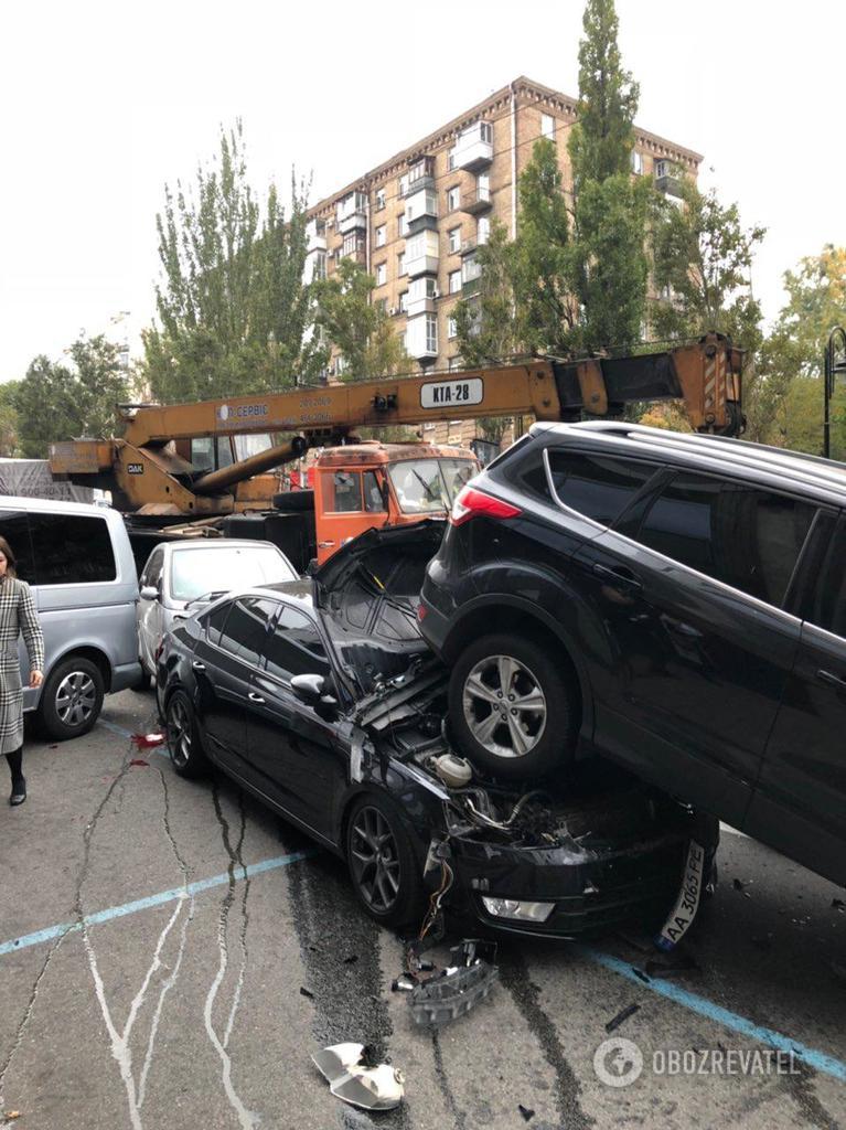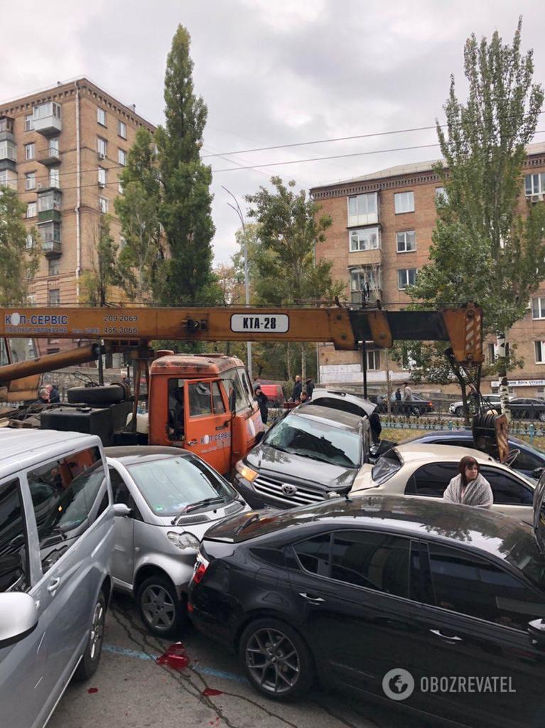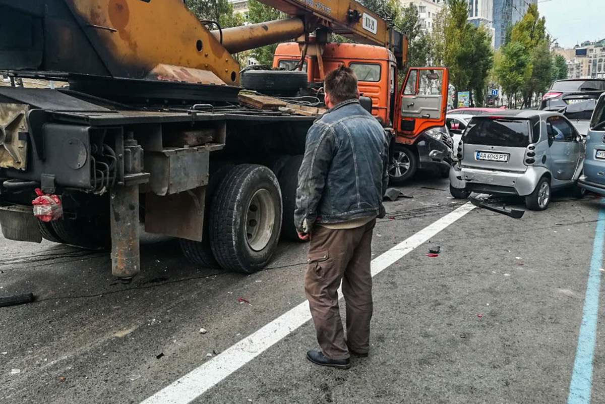 Появились новые фото эпичной аварии в центре Киева, где автокран снес 17 авто