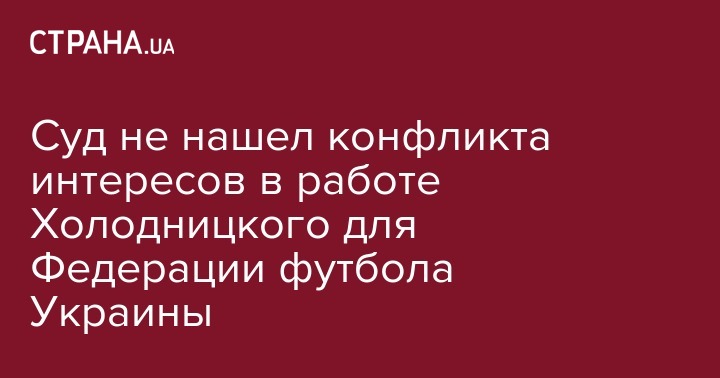 Окружной административный суд Киева признал отсутствие конфликта интересов при совмещении Назаром Холодницким должности заместителя генерального прокурора - специализированного антикоррупционного прокурора и первого вице-президента Федерации футбола Украины. Об этом говорится в решении суда от 8 октября, передают Украинские новости.