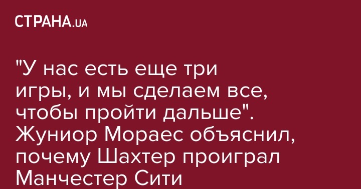 "У нас есть еще три игры, и мы сделаем все, чтобы пройти дальше". Жуниор Мораес объяснил, почему Шахтер проиграл Манчестер Сити