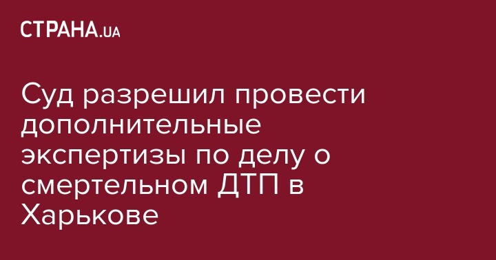 Киевский райсуд Харькова в среду частично удовлетворил ходатайства о проведении дополнительных экспертиз, заявленные адвокатами обвиняемых в ДТП, которое произошло в октябре 2017 года в центре Харькова и в результате которого погибли шесть человек,  передает Интрефакс-Украина.