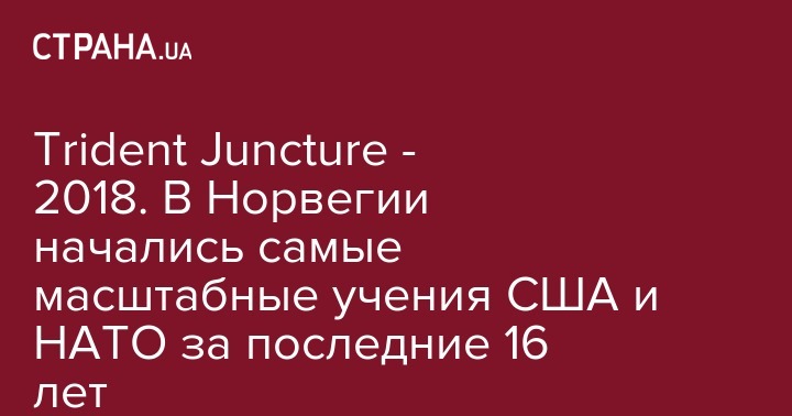 Сегодня, 25 октября, в Норвегии начались стратегические учения НАТО "Единый трезубец – 2018" (Trident Juncture 2018), сообщает "Интерфакс". Они продлятся до 7 ноября. В них будут участвовать все виды вооруженных сил, 45 тысяч военных, 10 тысяч транспортных средств, 150 единиц авиатехники и 70 кораблей из 31 страны. В маневрах примут участие как входящие в альянс страны, так и его партнеры - Финляндия и Швеция.