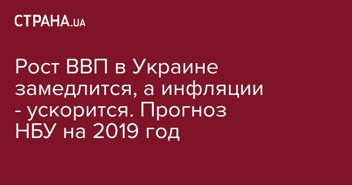 Рост ВВП в Украине замедлится, а инфляции - ускорится. Прогноз НБУ на 2019 год