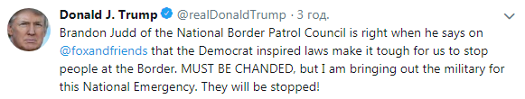 "Это должно измениться, но я направляю военных для (решения - Прим.Ред.) этой национальной чрезвычайной ситуации. Они будут остановлены!" - говорится в сообщении. Ранее президент США пообещал урезать финансовую помощь странам Латинской Америки из-за каравана мигрантов.