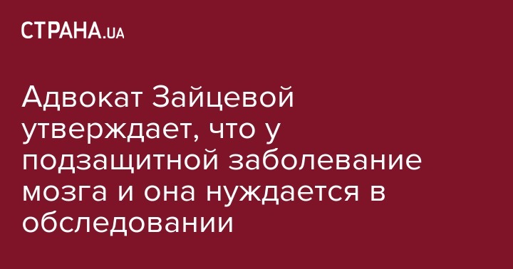 "Диагноз Зайцевой установили врачи в СИЗО. У нее посттравматическая энцефалопатия головного мозга... У Зайцевой наблюдается повышение давления, и она нуждается в обследовании у невропатолога. Такого специалиста в СИЗО нет", - добавил адвокат.